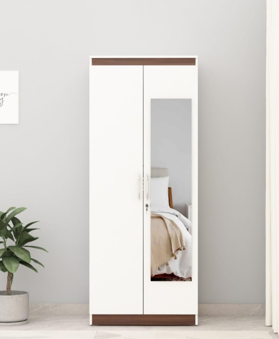2 door wardrobe in Frosty White colour with drawer and Hanging Space / 2 door wardrobe for bedroom with storage