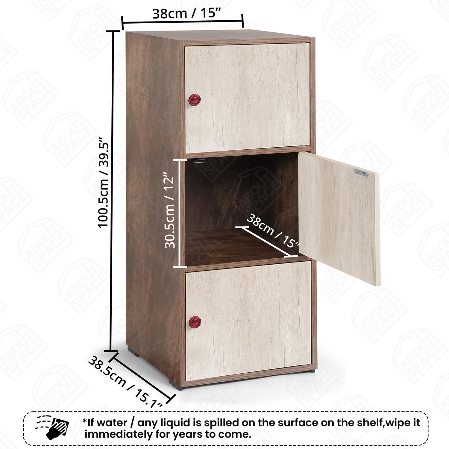 3 Tier Engineered Wood Storage Cabinet for Living Room with Magnetic Door, Space Saving Furniture for Home, Office, Kitchen (Walnut -L 38 x B 38.5 x H 100.5 cm)