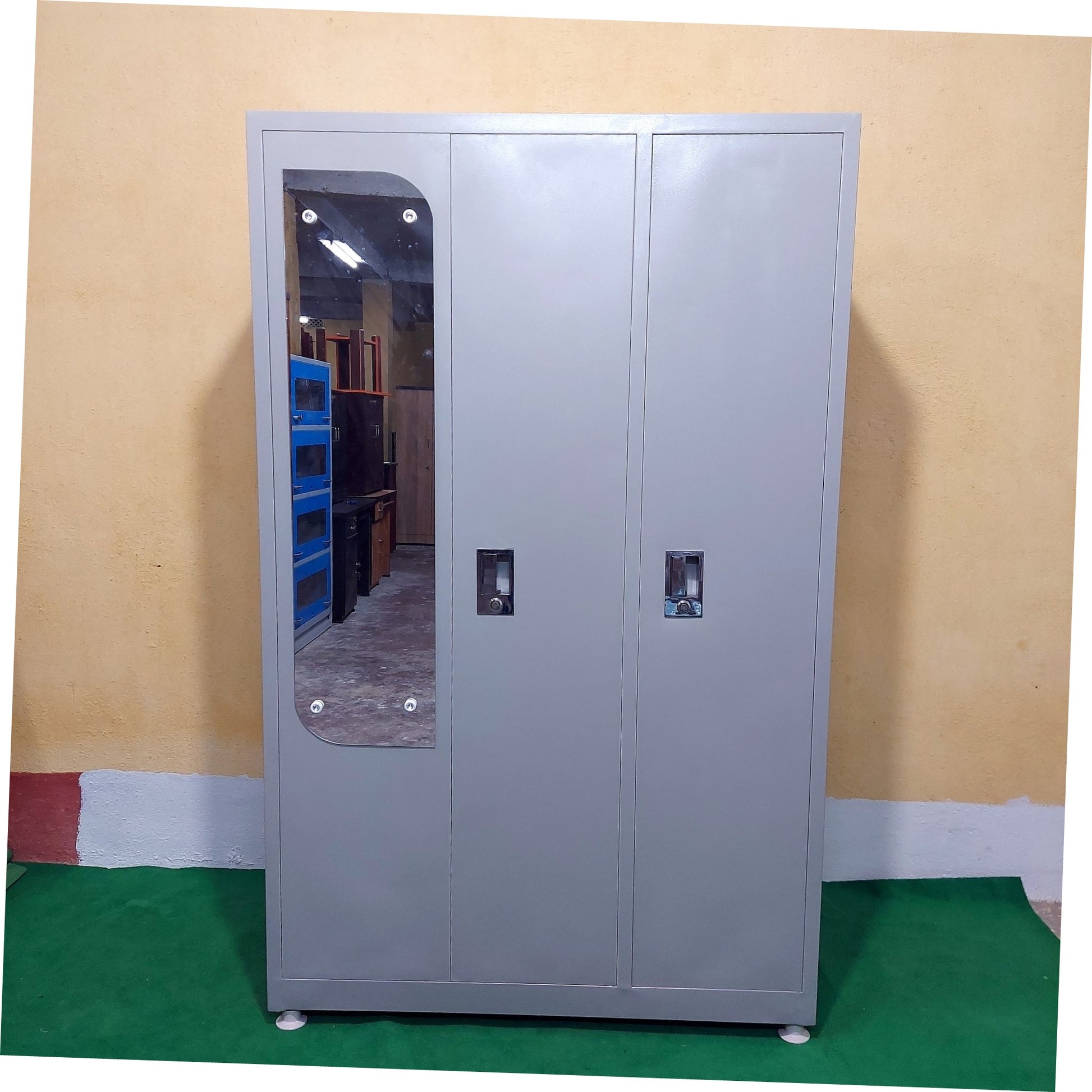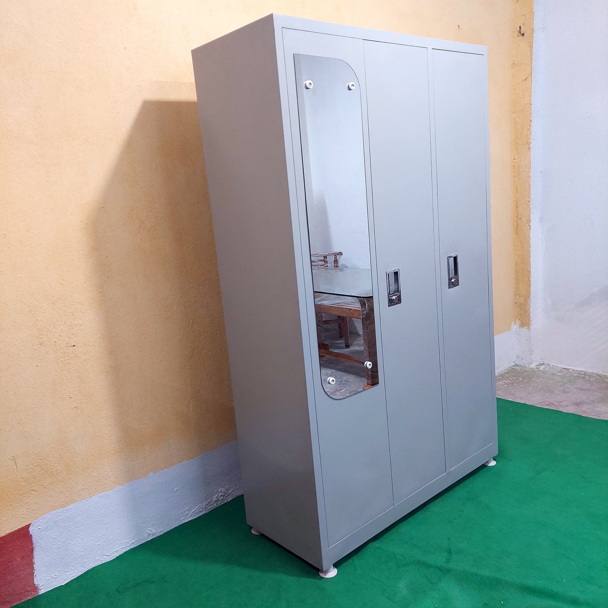 22 Gauge 3 Door Steel Almirah Wardrobe Standard Lock Hammertone Silver