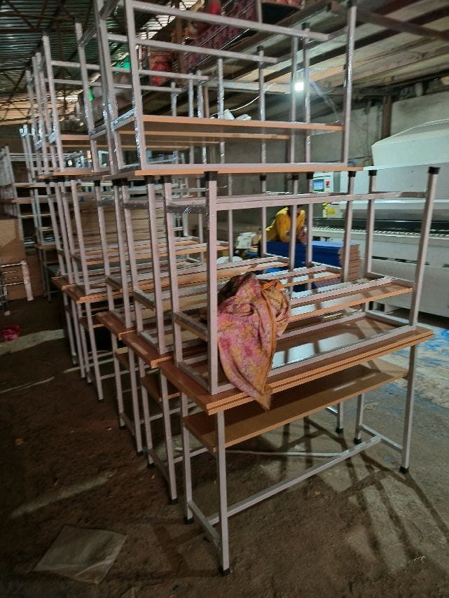 Bowzar Desk Bench Pair MDF Top Two Seater with Back Rest Powder Coated