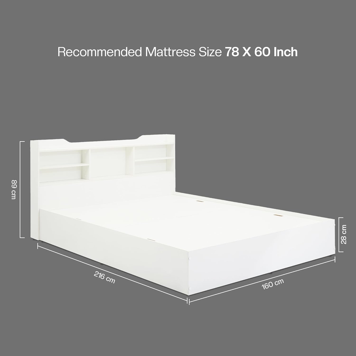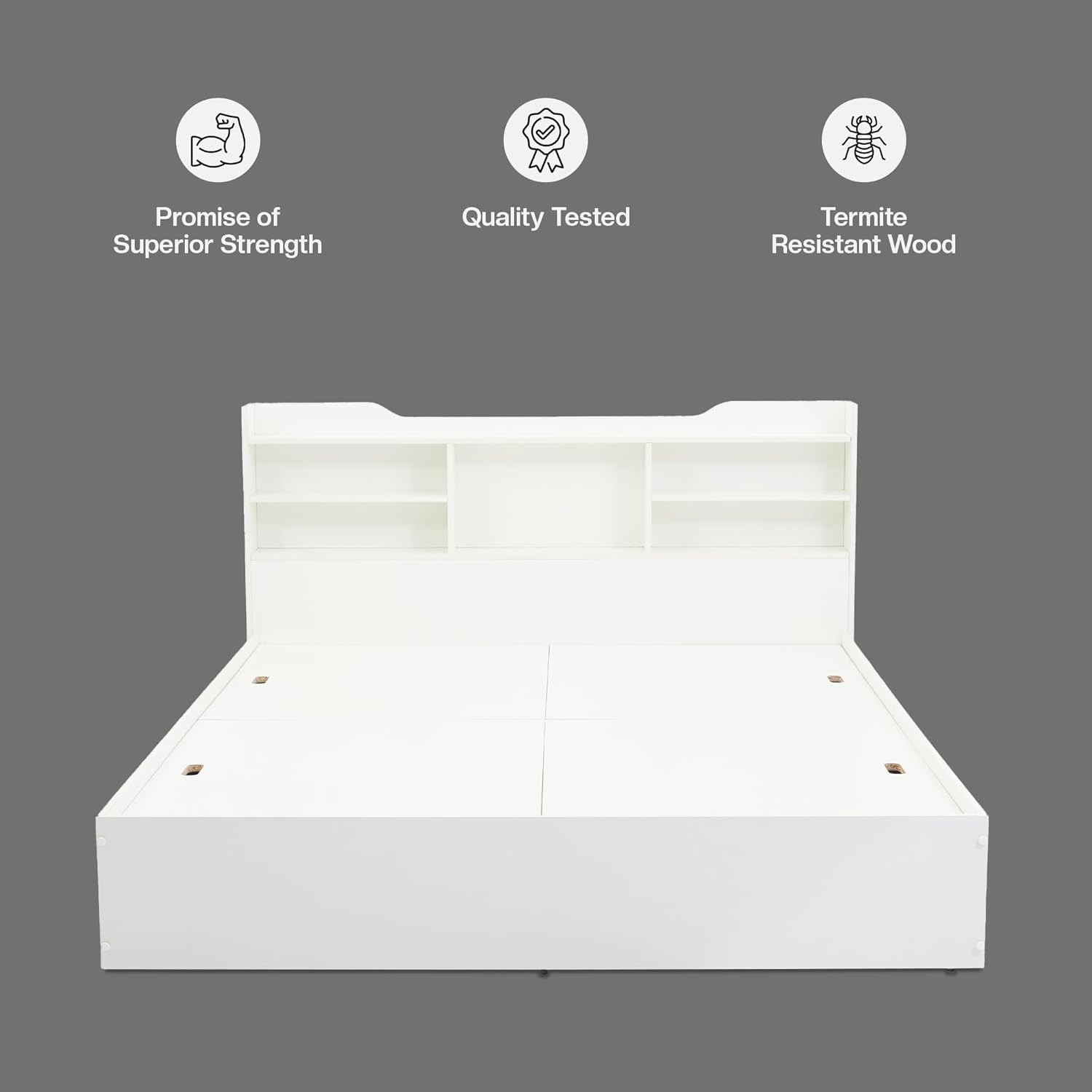 Bowzar King Size Box Bed with Headboard & Box Storage White Engineered Wood