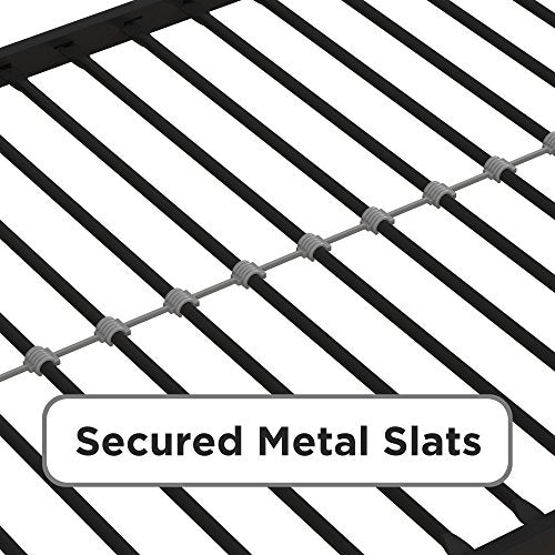 - Made with a Sturdy metal Construction | Includes secured metal slats, 12. 5-Inch full-length guardrails and a ladder integrated to the frame | Ladder can only be placed in one side