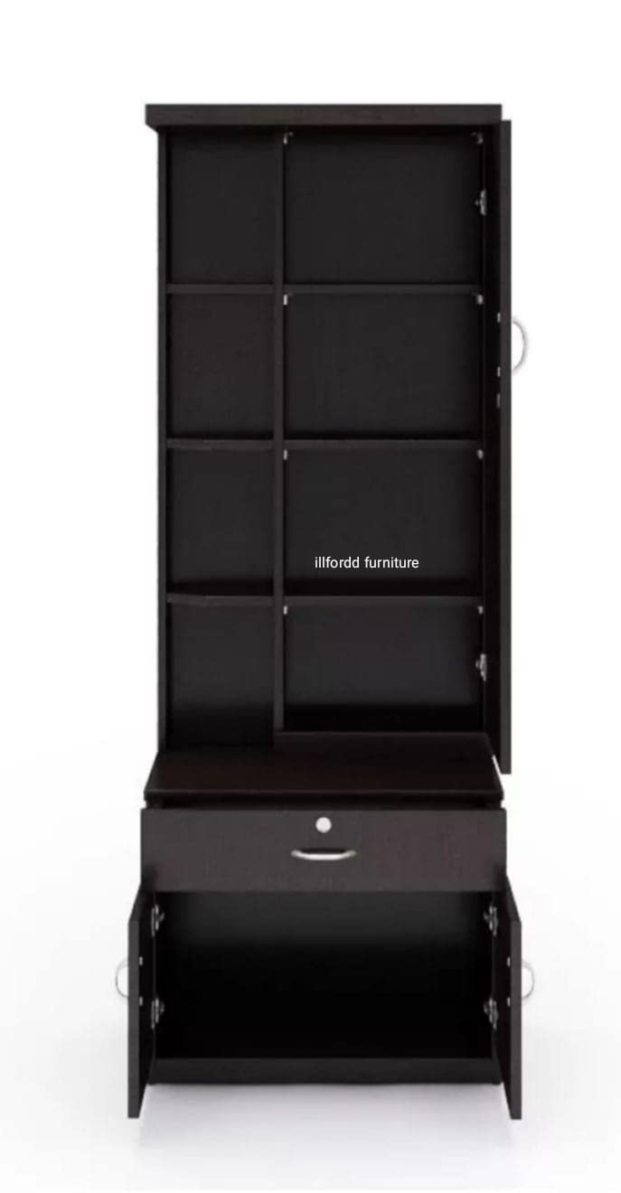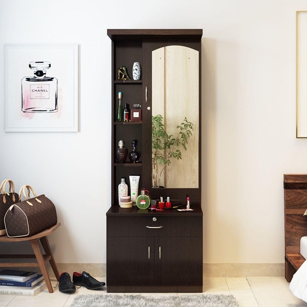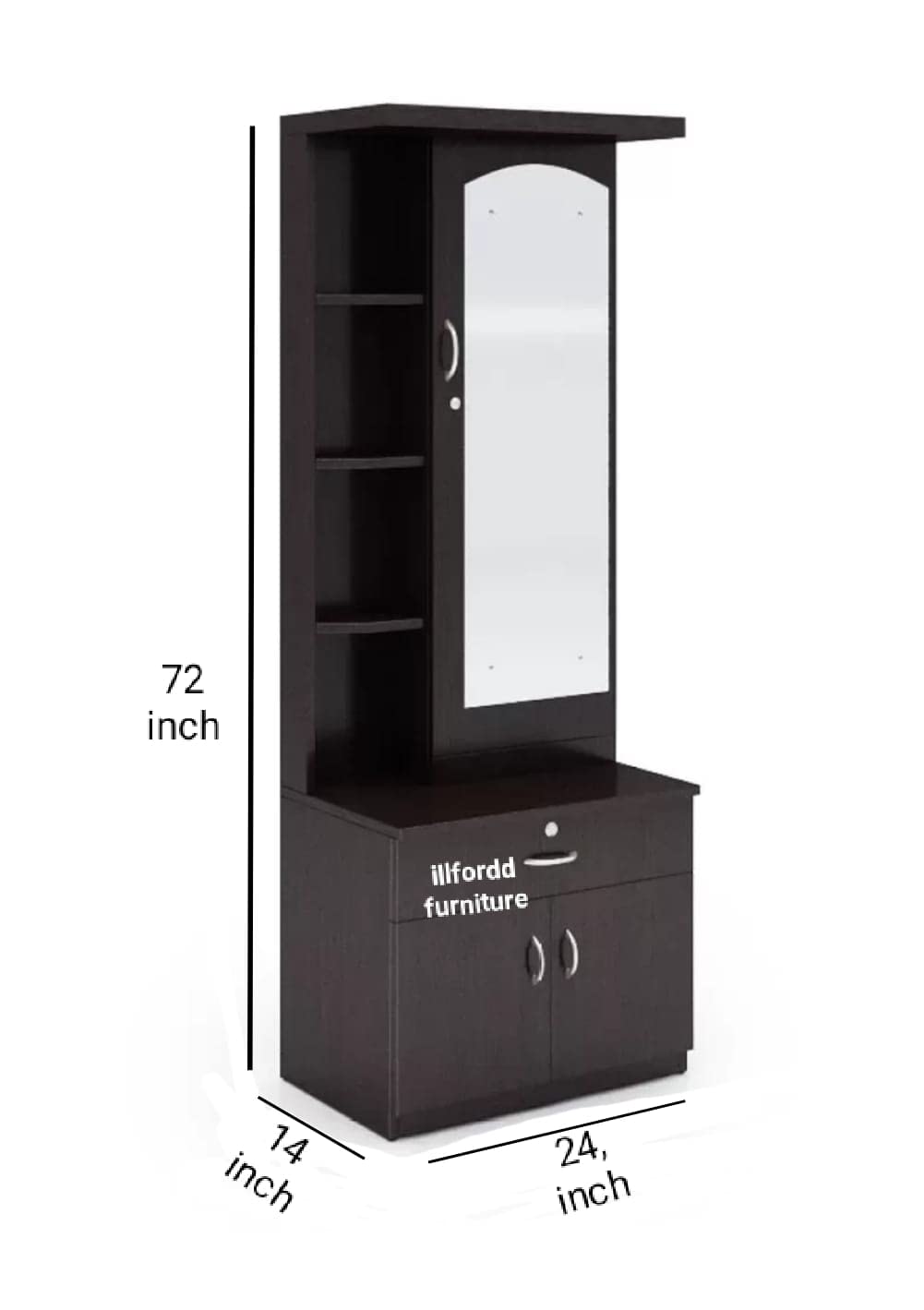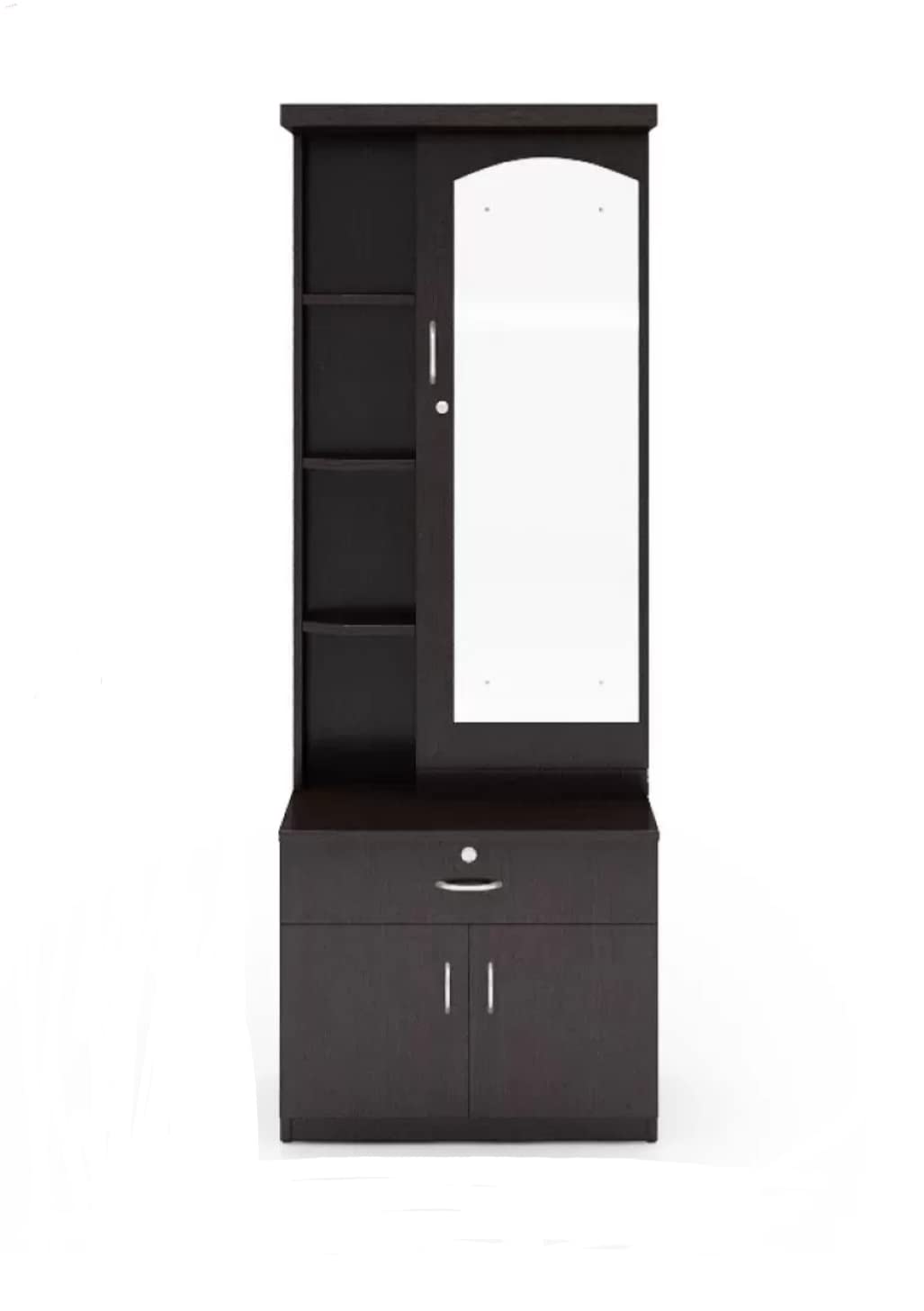 Dressing Table with Mirror and Storage Cupboard (Color-Dark Brown)