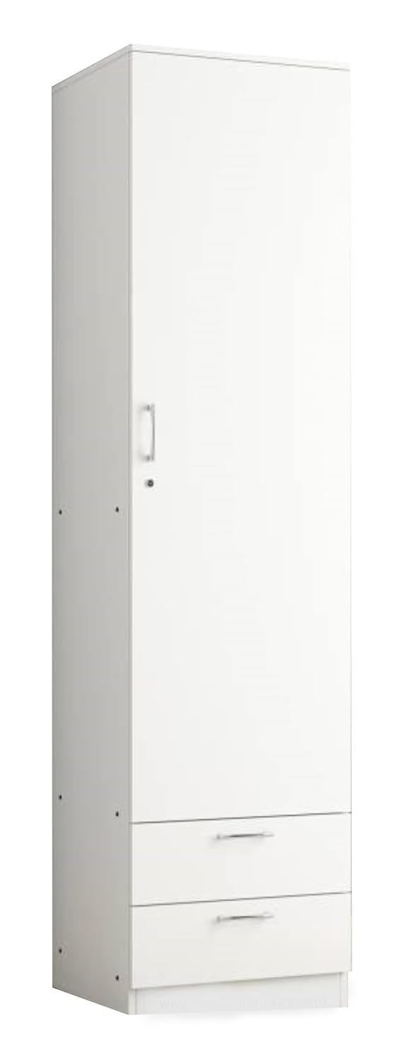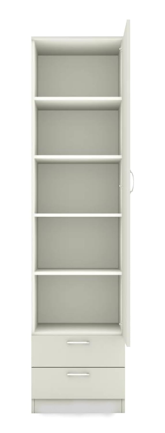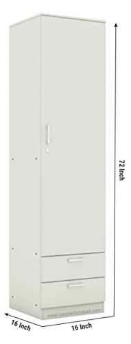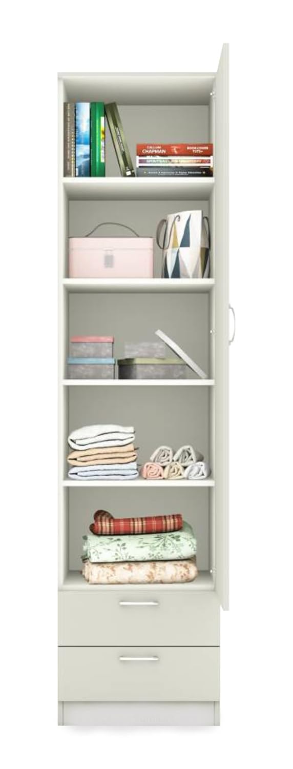 Engineered Wood Single Door Almirah Wardrobe (White) Clothes Storage Organizer with 5 Shelves & 2 Drawers