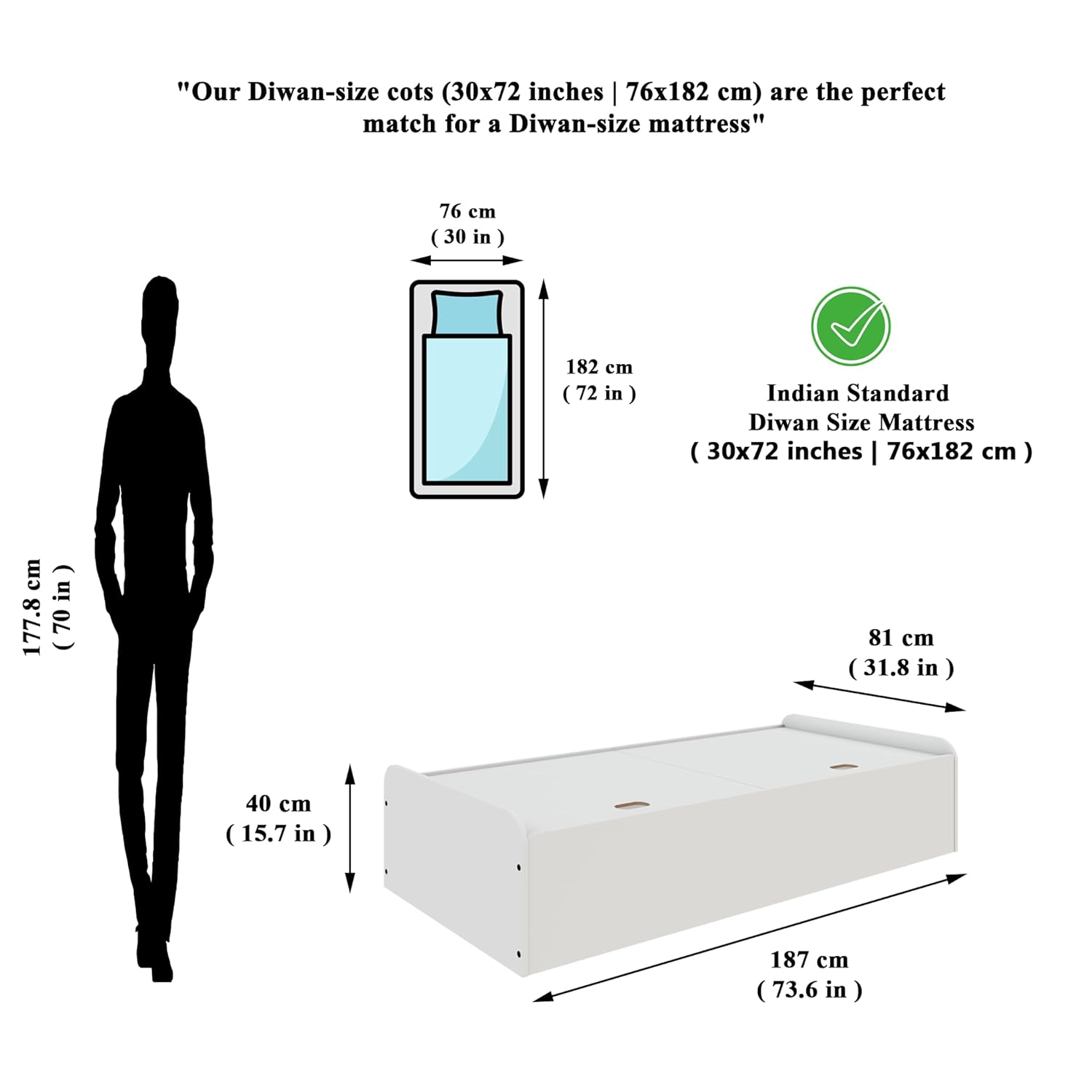 Engineered Wood Diwan with Storage, Bedroom Diwan | Single(30x72) | Frosty White