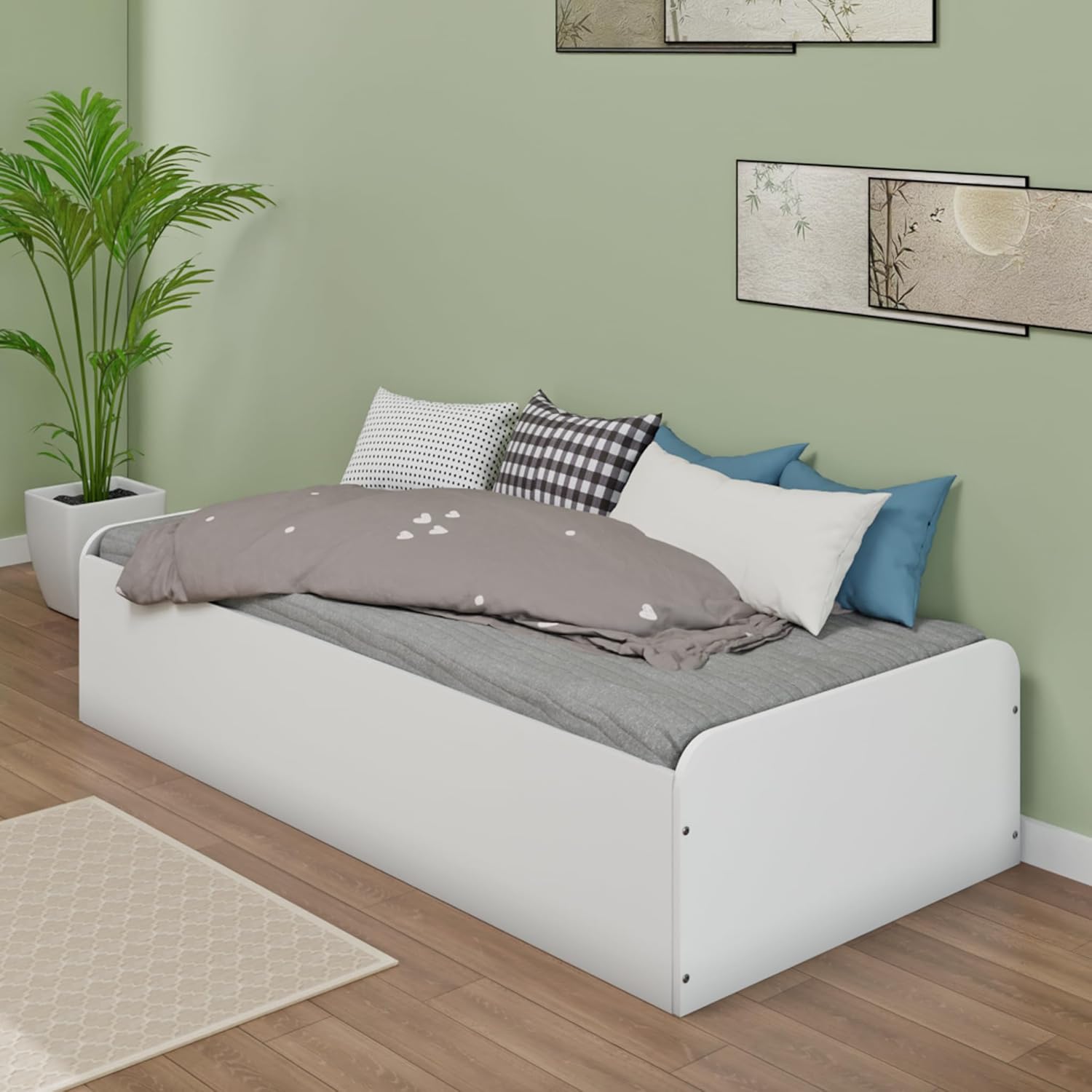Engineered Wood Diwan Bed with Storage, Single Bed Bedroom Diwan Bed Single(30x72) | Frosty White