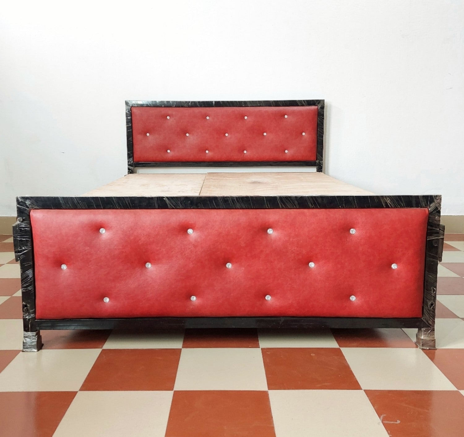 King Box Bed All Side Cushion Covered Heavy Quality Metal Box Bed